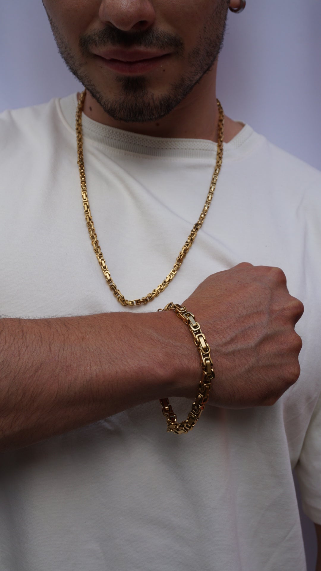 Nuestras joyas en Oro Laminado y Macizo conservan su color dorado, aunque pueden opacarse por sudor, pH de la piel, aceites naturales, uso diario o factores ambientales. Limpia con paño suave y evita químicos agresivos para mantener su brillo.