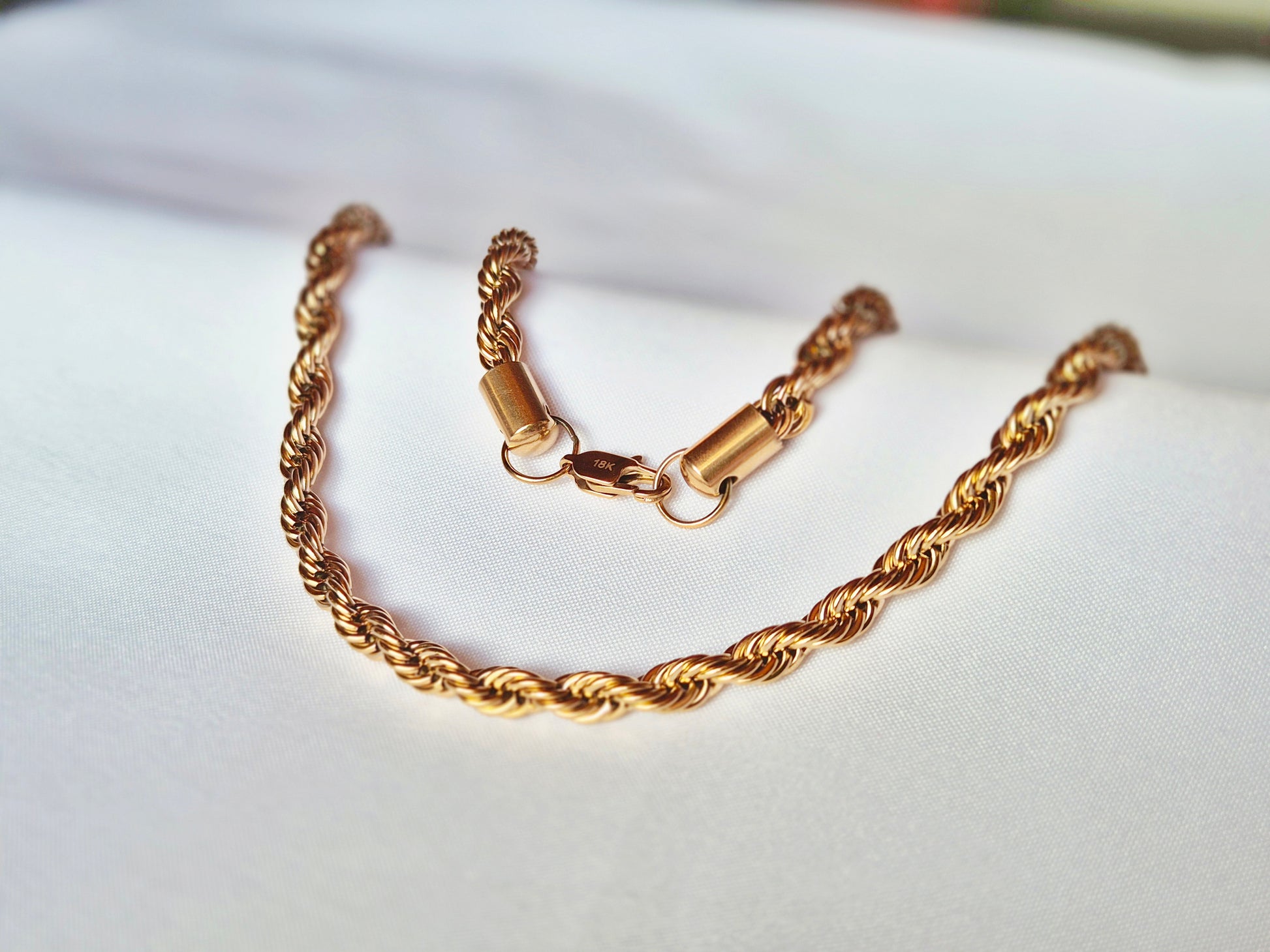 Con un diseño en forma de nudos suaves, esta cadena representa fortaleza y vínculo. Una opción moderna que expresa compromiso y estilo atemporal.
