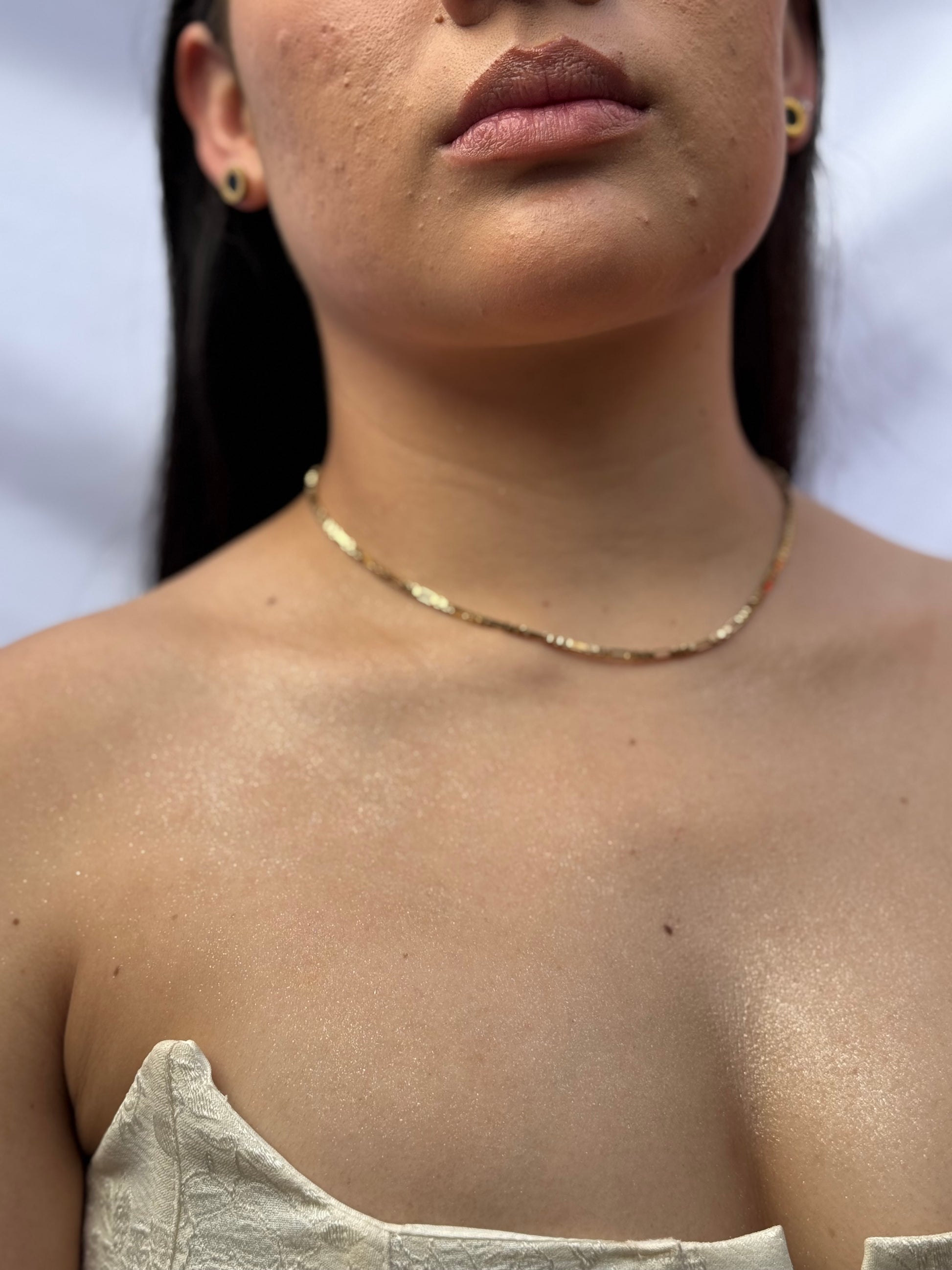 Nuestras joyas en Oro Laminado y Macizo conservan su color dorado, aunque pueden opacarse por sudor, pH de la piel, aceites naturales, uso diario o factores ambientales. Limpia con paño suave y evita químicos agresivos para mantener su brillo.