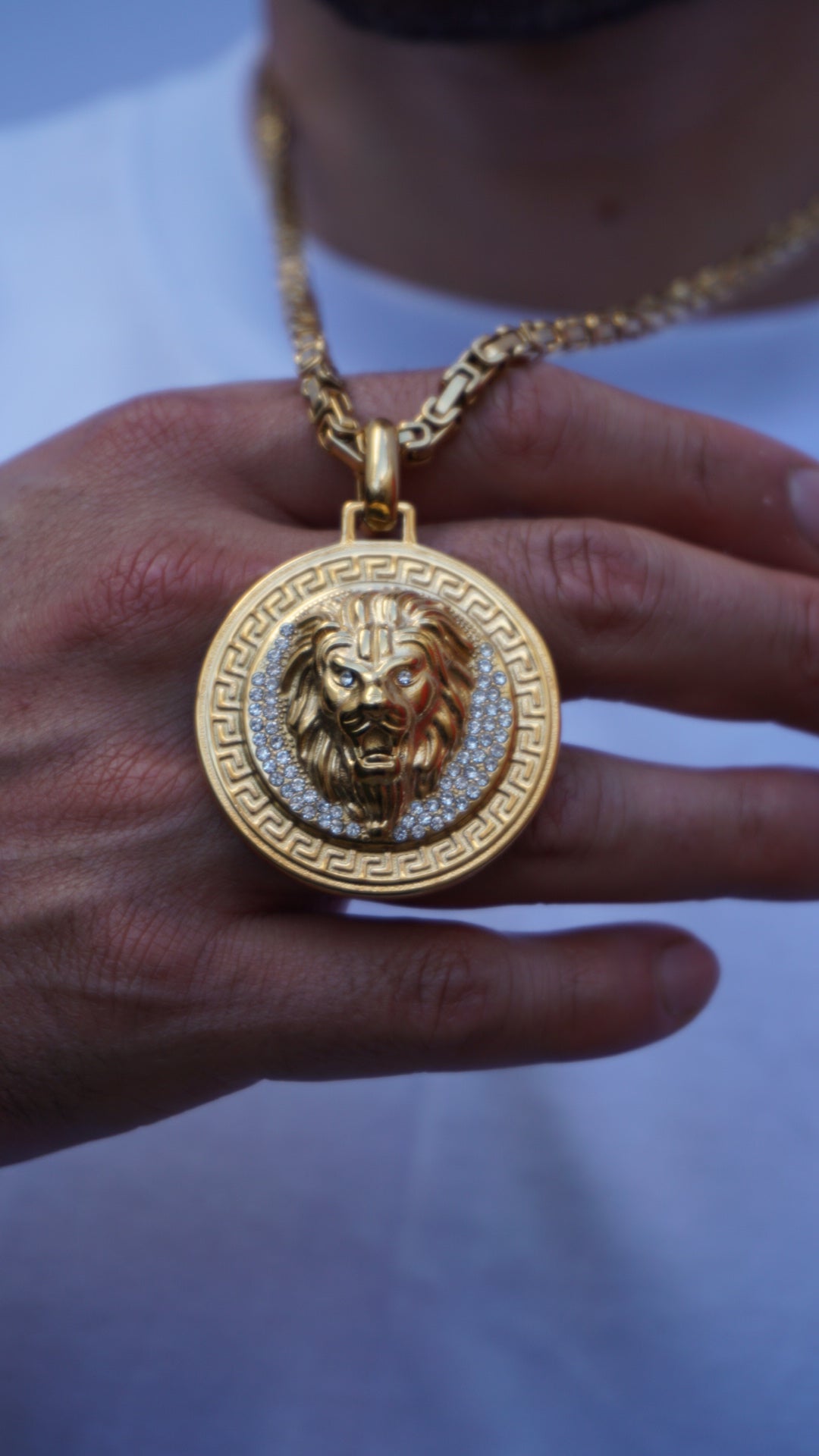 El le—n representa fuerza, poder y liderazgo. Este dije es un s’mbolo para quienes dominan su camino con valent’a. Su dise–o detallado en oro laminado transmite presencia y confianza.