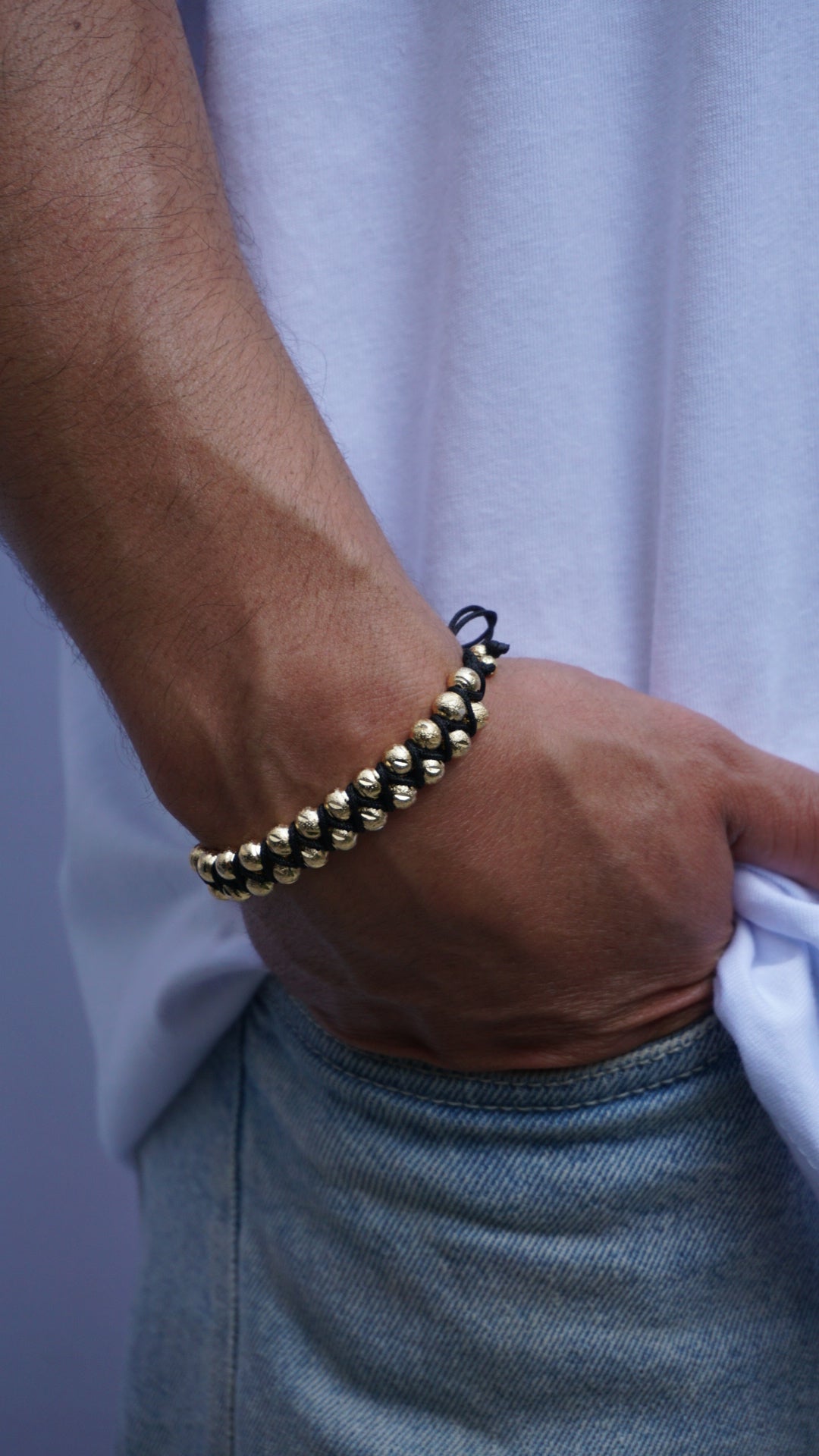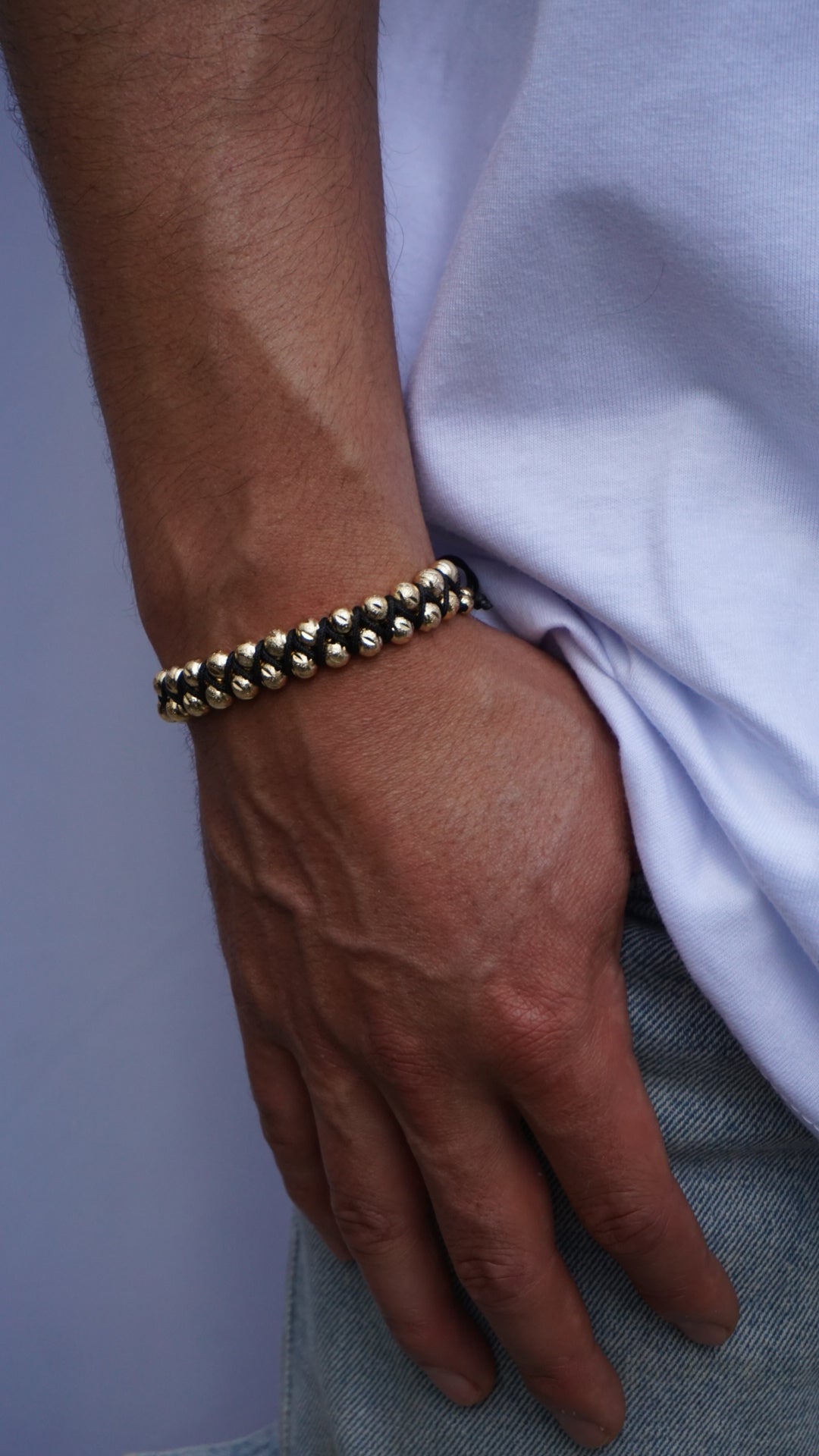 Inspiración italiana con doble tira de balines. Su estructura tejida aporta presencia y firmeza. Una pieza imponente para cualquier estilo.