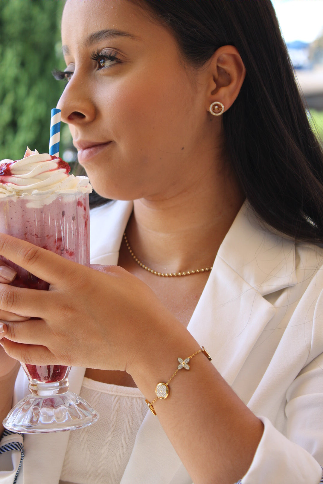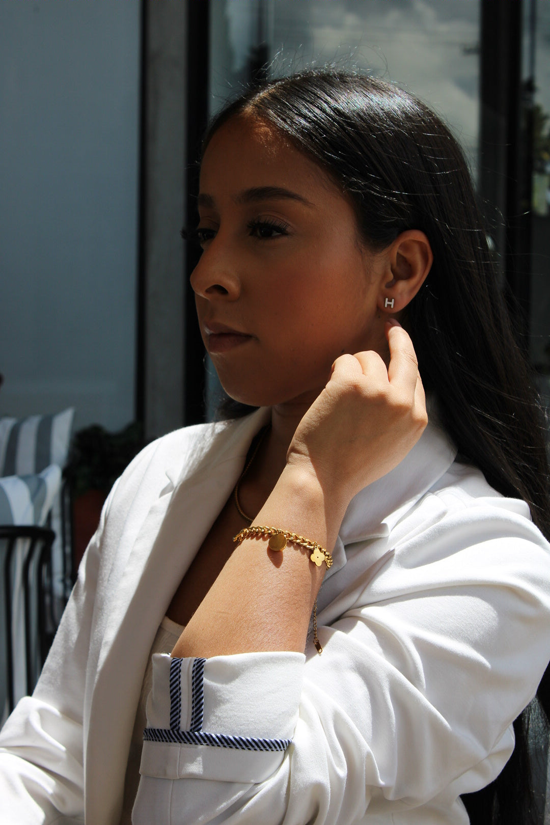 Nuestras joyas en Oro Laminado y Macizo conservan su color dorado, aunque pueden opacarse por sudor, pH de la piel, aceites naturales, uso diario o factores ambientales. Limpia con paño suave y evita químicos agresivos para mantener su brillo.